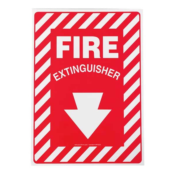 Fire Extinguisher Sign, Sign Subject Matter Fire Equipment, Height 14 in, Width 10 in, Sign Material Aluminum, Sign Mounting Style With Mounting Holes, Header No Header, Legend Fire Extinguisher, Printed Language English, Sign Shape Rectangle