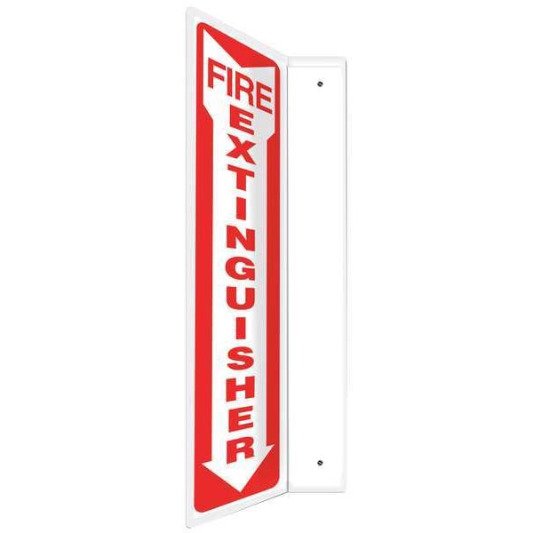 Fire Extinguisher Sign, Sign Subject Matter Fire Equipment, Height 18 in, Width 4 in, Sign Material Plastic, Sign Mounting Style L-Shaped, With Mounting Holes, Header No Header, Legend Fire Extinguisher, Printed Language English, Sign Shape L-Shaped