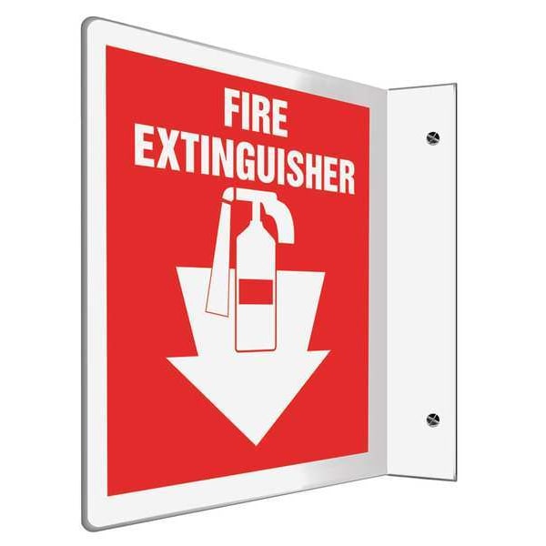 Fire Extinguisher Sign, Sign Subject Matter Fire Equipment, Height 8 in, Width 8 in, Sign Material Plastic, Sign Mounting Style With Mounting Holes, L-Shaped, Header No Header, Legend Fire Extinguisher, Printed Language English, Sign Shape L-Shaped