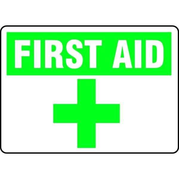 First Aid Sign, Sign Subject Matter First Aid, Height 7 In., Width 10 In., Sign Material Vinyl, Sign Mounting Style Adhesive Surface, Header No Header, Legend First Aid, Printed Language English, Sign Shape Rectangle