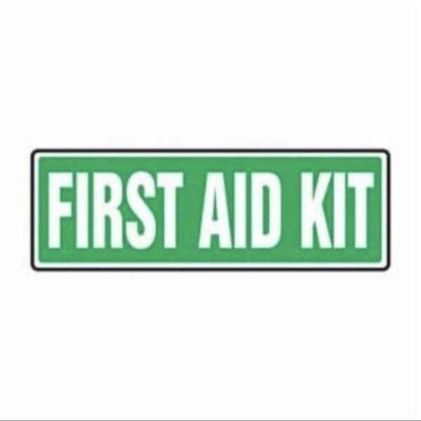 Accuform First Aid Sign, Legend FIRST AID KIT, 6 mil Adhesive DuraVinyl, 4 in Height, 12 in WidthSafety Signs identify and indicate potential, type, and degree of hazards that may lead to accidental injury or property damage Duallayered Adhesive DuraVinyl delivers exceptional flexibility and performance, outperforming standard vinyl Printed image is protected by a highgloss UV protective coating Adhesive DuraVinyl is durable, even in the toughest indoor and outdoor conditions, and adheres to most smooth, curved, and irregular surfaces