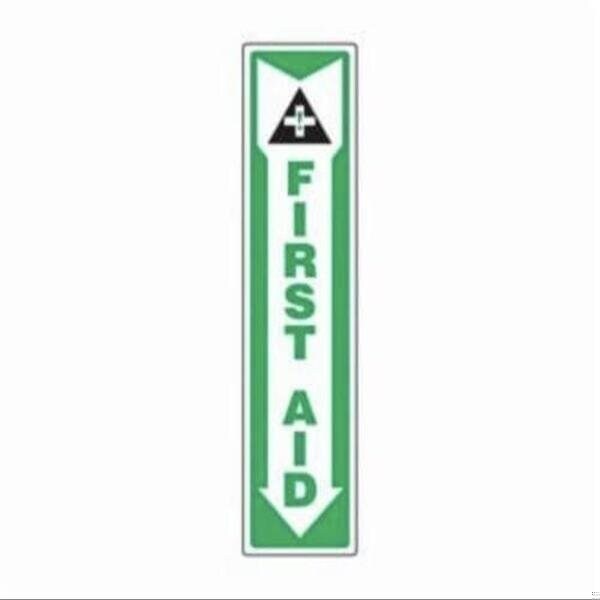 Accuform First Aid Sign, Legend FIRST AID WGRAPHIC, 6 mil Adhesive DuraVinyl, 18 in Height, 4 in WidthSafety Signs identify and indicate potential, type, and degree of hazards that may lead to accidental injury or property damage Duallayered Adhesive DuraVinyl delivers exceptional flexibility and performance, outperforming standard vinyl Printed image is protected by a highgloss UV protective coating Adhesive DuraVinyl is durable, even in the toughest indoor and outdoor conditions, and adheres to most smooth, curved, and irregular surfaces