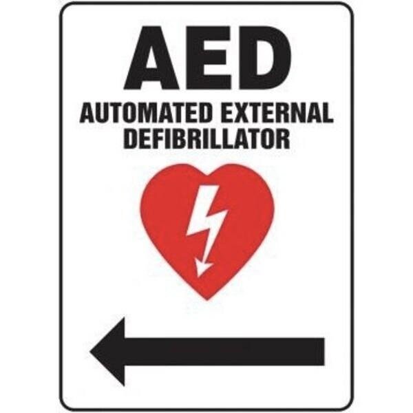 Accuform First Aid Sign, TextSymbol Legend, AED AUTOMATED EXTERNAL DEFIBRILLATOR GRAPHIC LEFT ARROW Legend, 0055 in Plastic, 14 in Height, 10 in WidthSafety Signs identify and indicate potential, type and degree of hazards that may lead to accidental injury or property damage Plastic signs are semiflexible, made with 50 recycled content and ideal for indoor and shortterm, sheltered outdoor environments Plastic signs feature good impact resistance, UV inhibitors and enough flex to mount on slightly curved areas