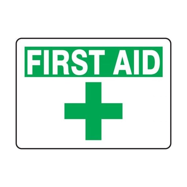 Accuform First Aid Sign, Rectangle, NO HEADER, TextSymbol Legend, FIRST AID GRAPHIC Legend, 4 mil Adhesive Vinyl, Adhesive Surface Mount, 10 in Height, 14 in Width, Green on whiteSafety Signs identify and indicate potential, type and degree of hazards that may lead to accidental injury or property damage Adhesive Vinyl is the ideal choice for a variety of indoor and sheltered outdoor, marking needs Easily mounts to all curved areas such as pipes, poles and secondary containers Adhesive Vinyl signs feature a printed matte surface, moistureresistance and scored backing for quick peeloff and application