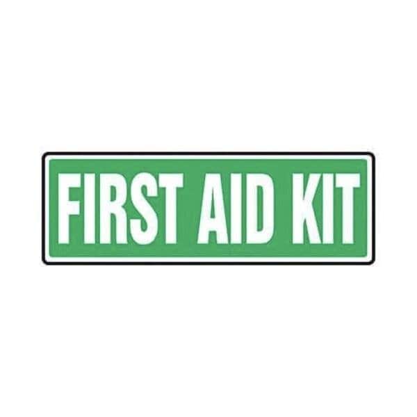 Accuform First Aid Sign, Text Legend, Legend FIRST AID KIT, 004 in Aluminum, 4 in Height, 12 in WidthSafety Signs identify and indicate potential, type and degree of hazards that may lead to accidental injury or property damage Aluminum signs withstand washdowns, harsh elements, abusive conditions and feature good chemical, abrasion and impact resistance Aluminum is excellent for indoor and outdoor usage, making it ideal for a wide variety of industrialstrength applications