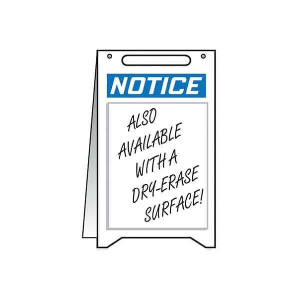 Accuform Floor Sign, Series FoldUps, Header NOTICE, Language English, Text Legend, Legend DryEraseSurface, High Impact Plastic, 20 in Height, 12 in Width