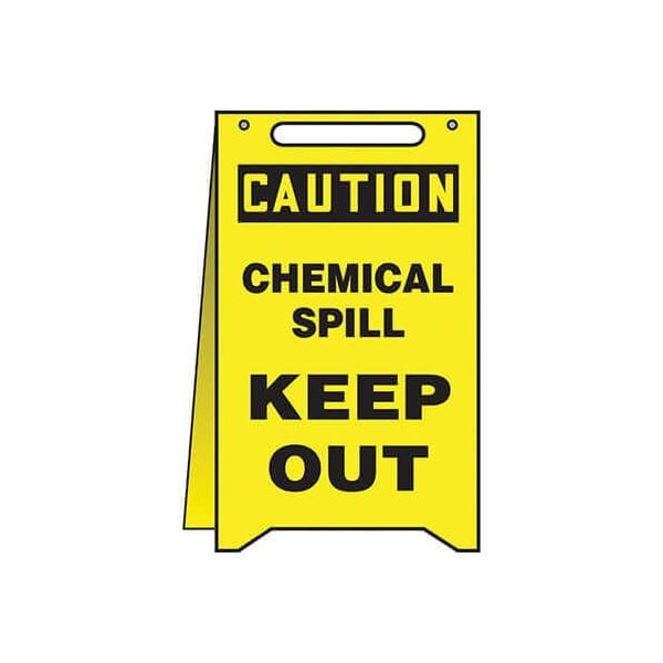Accuform Floor Sign, Series FoldUps, Text Legend, Legend CAUTION CHEMICAL SPILL KEEP OUT, 0125 in High Impact Plastic, 20 in Height, 12 in Width
