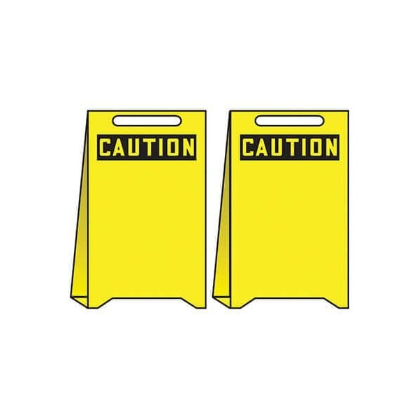 Accuform Floor Sign, Reversible, Series FoldUps, Header CAUTION, Text Legend, Legend Blank, Corrugated Plastic, 20 in Height, 12 in Width, Yellow LegendBackgroundMark temporary hazards with lightweight plastic floor signs and they're reversible Reversible FoldUps provide the versatile advantage of having two signs in one Signs are printed with bold messages and symbols on the panels to warn and direct Flip and fold the sign insideout to reveal the other message, now on the outside panels Signs are made of lightweight, waterproof corrugated plastic with foldandinsert tab design to stand 20 in H x 12 in W They have a carry handle cutout on top and fold flat for transport and storage They are economically ideal for limited purposes or disposable for onetime use