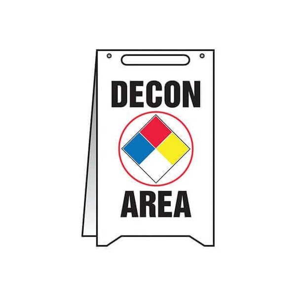 Accuform Floor Sign, Series FoldUps, Language English, Text Legend, Legend DECON AREA, High Impact Plastic, 20 in Height, 12 in Width