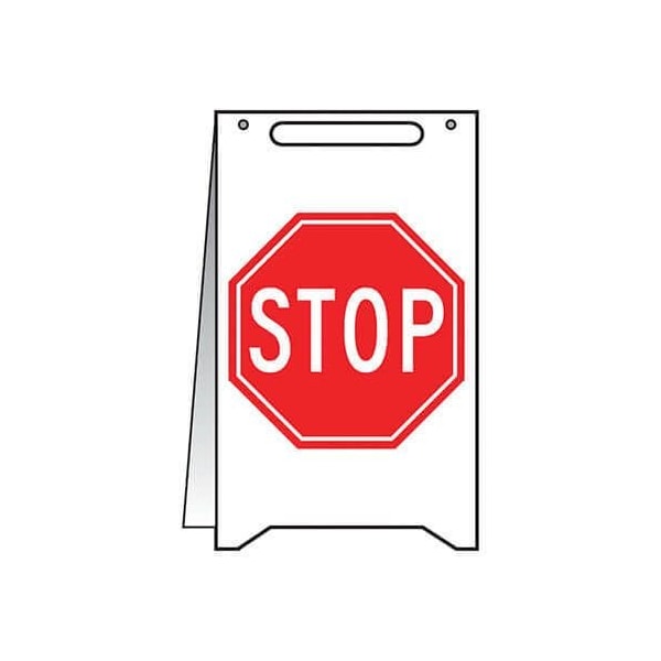 Accuform Floor Sign, Series FoldUps, Text Legend, Legend STOP, High Impact Plastic, 20 in Height, 12 in WidthIdentify temporary hazardous conditions or display messages quickly and easily with freestanding FoldUps Floor Signs Rugged plastic makes them ideal for multiple uses and rough handling FoldUps Floor Signs are selfsupporting and constructed of 0125 in highimpact plastic They measure 20 x 12 in, have a handle cutout for ease of carrying and fold flat for transport and storage Both sides are printed with the same message
