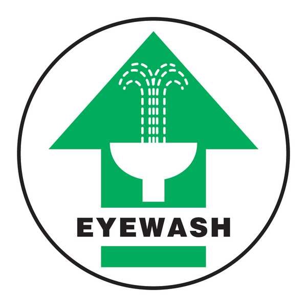 Floor Sign, Round, Number of Printed Sides 1, English, Sign Format Other Format, Sign Legend Eyewash, Sign Legend Background Color White, Sign Legend Style Symbol and Text, Sign Legend Character Height 1 19/50 in