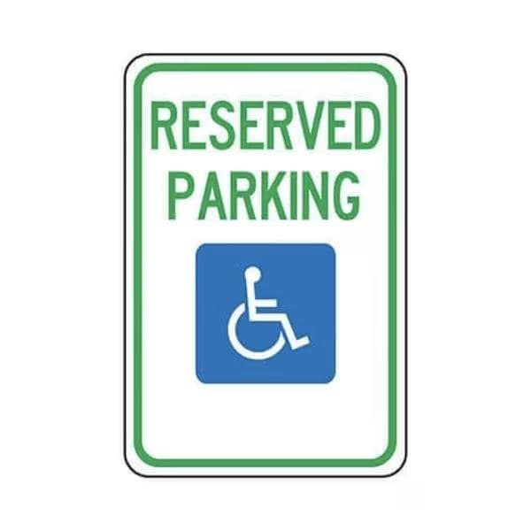 Accuform Handicap Parking Sign, TextSymbol Legend, RESERVED PARKING WGRAPHIC Legend, 008 in Aluminum, PostFence Mount, 18 in Height, 12 in WidthTraffic signs safely direct and regulate the flow of vehicles and pedestrians in and around parking areas, dock areas and roadways Keep driveways, throughways and curbs free of vehicles and direct to designated parking locations with proper signs EngineerGrade Prismatic Traffic Signs are made of durable 0080 thick Aluminum that will not rust Microprismatic retroreflective sheeting provides added visibility in lowlight and nighttime conditions Signs are printed with UVresistant inks that prevent fading during longterm outdoor exposure and are predrilled with post mount holes