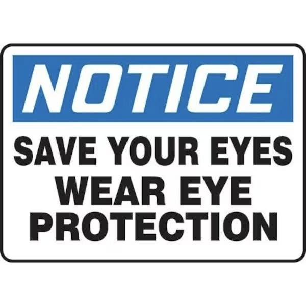Accuform Notice Sign, Header NOTICE, Text Legend, Legend HARD HATS REQUIRED IN THIS AREA, 6 mil Adhesive DuraVinyl, 10 in Height, 14 in WidthSafety Signs identify and indicate potential, type and degree of hazards that may lead to accidental injury or property damage Duallayered Adhesive DuraVinyl delivers exceptional flexibility and performance, outperforming standard vinyl Printed image is protected by a highgloss UV protective coating Adhesive DuraVinyl is durable, even in the toughest indoor and outdoor conditions and adheres to most smooth, curved and irregular surfaces