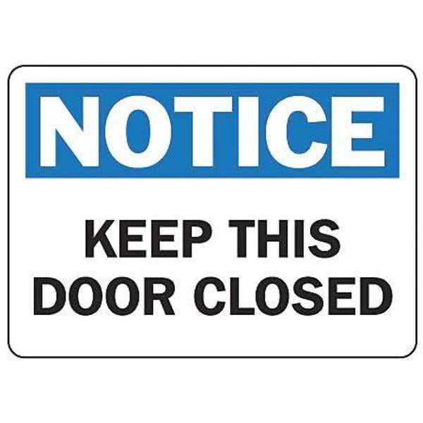 Notice Sign, Sign Subject Matter Door Instruction, Height 10 in, Width 14 in, Sign Material Vinyl, Sign Mounting Style Adhesive Surface, Header Notice, Legend Keep This Door Closed, Printed Language English, Sign Shape Rectangle