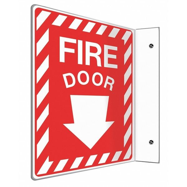 L-Shape Projection Sign, Sign Subject Matter Exit and Entrance, Height 12 In., Width 9 In., Sign Material Plastic, Sign Mounting Style With Mounting Holes, L-Shaped, Header No Header, Legend Fire Door, Printed Language English, Sign Shape L-Shaped