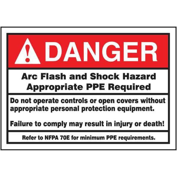 Label, Horizontal Rectangle, Number of Printed Sides 1, English, Sign Format ANSI/OSHA Format, Sign Legend Arc Flash And Shock Hazard Appropriate Ppe Required Do Not Operate Controls Or Open Covers Without Appropriate Personal Protection Equipment. Failure To Comply May Result In Injury Or Death! Refer To Nfpa 70E For Minimum Requirements, Sign Legend Background Color White, Sign Legend Style Text