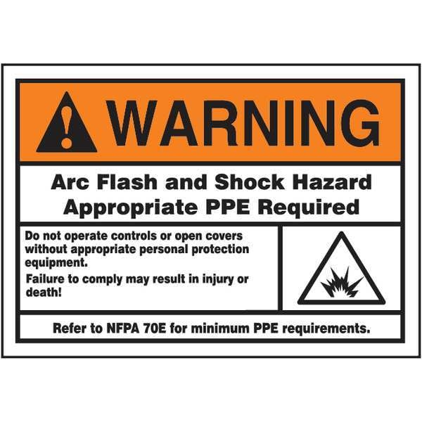 Label, Horizontal Rectangle, Number of Printed Sides 1, English, Sign Format ANSI/OSHA Format, Sign Legend Arc Flash And Shock Hazard Appropriate Ppe Required Do Not Operate Controls Or Open Covers Without Appropriate Personal Protection Equipment. Failure To Comply May Result In Injury Or Death! Refer To Nfpa 70E For Minimum Requirements, Sign Legend Background Color White, Sign Legend Style Symbol and Text