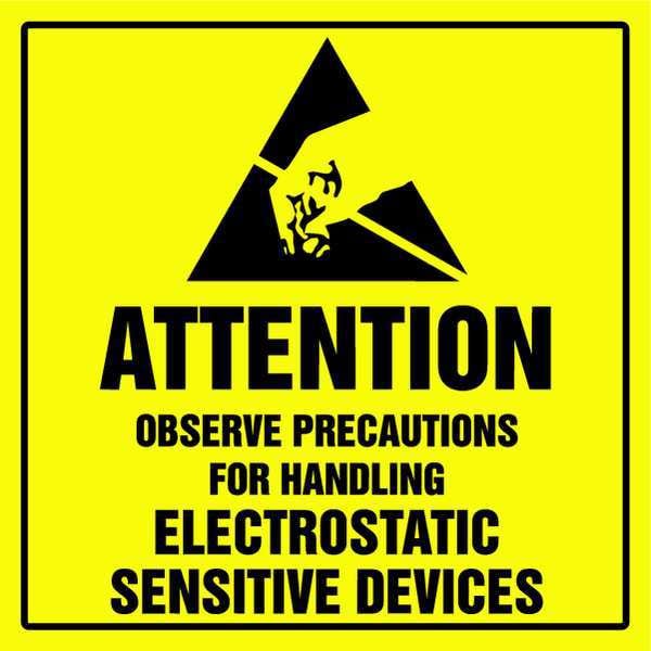 Electrostatic Sensitive Devices Label, Vertical Rectangle, English, Sign Legend Attention Observe Precautions For Handling Electrostatic Sensitive Devices, Sign Legend Background Color Yellow, Sign Legend Style Symbol and Text, Package Quantity 500
