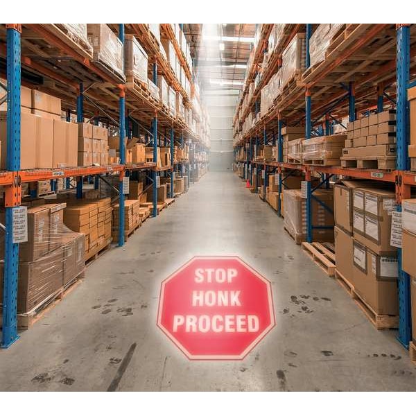 LED Projector with Lens, Voltage 110 V AC, Length 6 in, Width 5 in, Height 9 in, Legend/Background Color Stop Honk Proceed, Includes Lens, Mounting Bracket, Projector, Remote Control