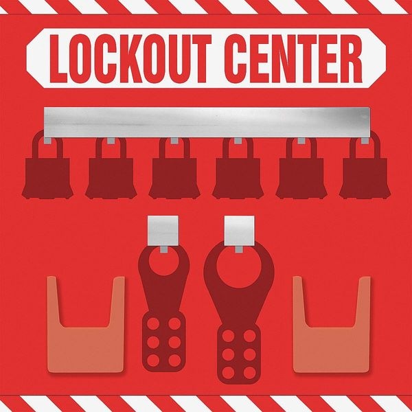 Lockout Board, Unfilled, Number of Components 0, Height 14 in, Width 14 in, Depth 2 in, Color Red/White, Material Aluminum/Polyester, Max. Number of Padlocks 0, Wall Mounting Yes, Portable No
