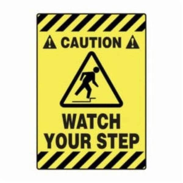 Accuform Mat Floor Sign, Series SlipGard, Legend CAUTION WATCH YOUR STEP, NonSlip Adhesive Vinyl, 20 in Height, 14 in Width Mark bold graphics and messages on your floors and pathways with nonslip floor signs SelfAdhesive vinyl signs are 020 in thick, subsurface printed, and Over laminated by a protective layer This layer is a nonslip vinyl surface that is pebbletextured for added durability to withstand heavy pedestrian traffic SlipGard Floor Signs have a strong, permanent Acrylic Adhesive back with peeloff liner which adheres firmly to smooth, clean, dry surfaces