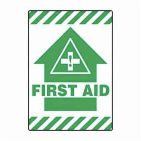 Accuform Mat Floor Sign, Series SlipGard, Header NO Header, Legend FIRST AID ARROW, NonSlip Adhesive Vinyl, 20 in Height, 14 in Width Mark bold graphics and messages on your floors and pathways with nonslip floor signs SelfAdhesive vinyl signs are 020 in thick, subsurface printed, and Over laminated by a protective layer This layer is a nonslip vinyl surface that is pebbletextured for added durability to withstand heavy pedestrian traffic SlipGard Floor Signs have a strong, permanent Acrylic Adhesive back with peeloff liner which adheres firmly to smooth, clean, dry surfaces