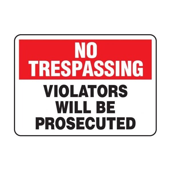 MATR900VS Safety Sign, NO TRESPASSING VIOLATORS WILL BE PROSECUTED, 10 X 14, Vinyl
