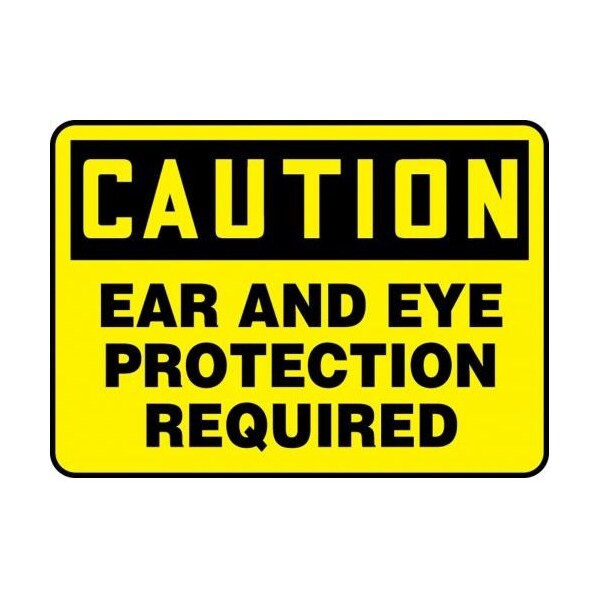 MPPE436VS Safety Sign, CAUTION EAR AND EYE PROTECTION REQUIRED, 7 X 10, Vinyl