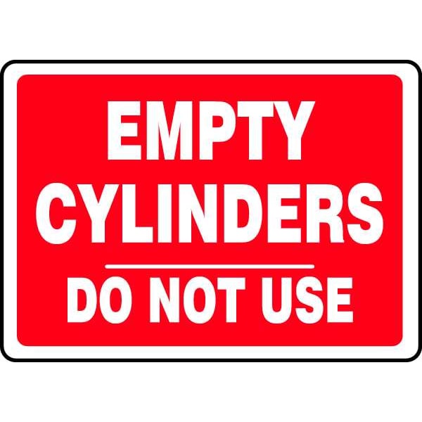 Cylinder Sign, Sign Subject Matter Chemical, Gas or Hazardous Materials, Height 7 in, Width 10 in, Sign Material Vinyl, Sign Mounting Style Adhesive Surface, Header No Header, Legend Empty Cylinders Do Not Use, Printed Language English, Sign Shape Rectangle