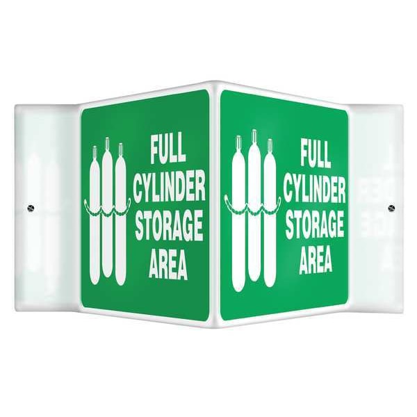 V-Shape Projection Sign, Sign Subject Matter Chemical, Gas or Hazardous Materials, Height 6 in, Width 8 1/2 in, Sign Material Plastic, Sign Mounting Style With Mounting Holes, Header No Header, Legend Full Cylinder Storage Area, Printed Language English, Sign Shape V-Shaped