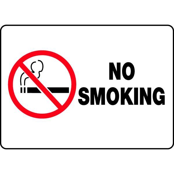 No Smoking Sign, Sign Subject Matter No Smoking, Height 10 in, Width 14 in, Sign Material Aluminum, Sign Mounting Style With Mounting Holes, Header No Header, Legend No Smoking, Printed Language English, Sign Shape Rectangle