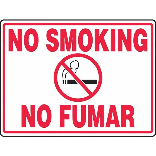No Smoking Sign, Sign Subject Matter No Smoking, Height 24 in, Width 36 in, Sign Material Plastic, Sign Mounting Style With Mounting Holes, Header No Header, Legend No Smoking/No Fumar, Printed Language English, Spanish, Sign Shape Rectangle