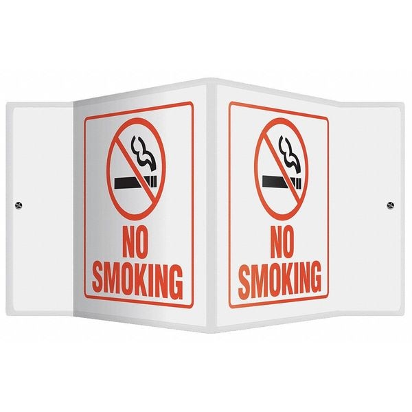 No Smoking Sign, Sign Subject Matter No Smoking, Height 6 in, Width 8 1/2 in, Sign Material Plastic, Sign Mounting Style With Mounting Holes, V-Shaped, Header No Header, Legend No Smoking, Printed Language English, Sign Shape V-Shaped