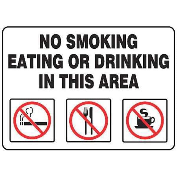 No Smoking Sign, Sign Subject Matter No Smoking, Height 7 in, Width 10 in, Sign Material Aluminum, Sign Mounting Style With Mounting Holes, Header No Header, Legend No Smoking Eating Or Drinking In This Area, Printed Language English, Sign Shape Rectangle