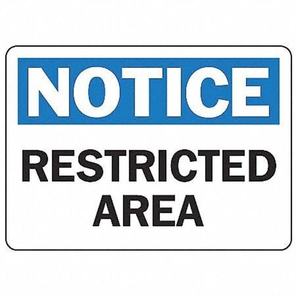 Notice, Restricted Area, 10" W x 7" H, Rectangle, Plastic (Discontinued)