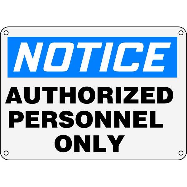 Notice Sign, Sign Subject Matter Authorized Personnel and Restricted Access, Height 10 in, Width 14 in, Sign Material Plastic, Sign Mounting Style With Mounting Holes, Header Notice, Legend Authorized Personnel Only, Printed Language English, Sign Shape Rectangle