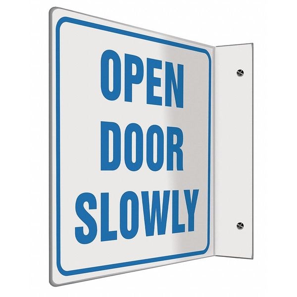 L-Shape Projection Sign, Sign Subject Matter Door Instruction, Height 8 In., Width 8 In., Sign Material Plastic, Header No Header, Legend Open Door Slowly, Printed Language English, Sign Shape L-Shaped