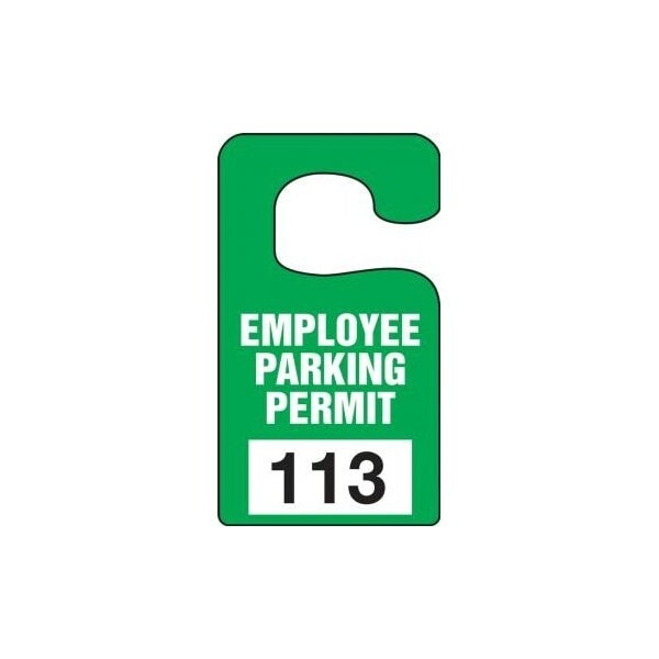 Parking Permit Tag, EMPLOYEE PARKING PERMIT Numbered 400-499, Blue, 5in x 3in, 100PK