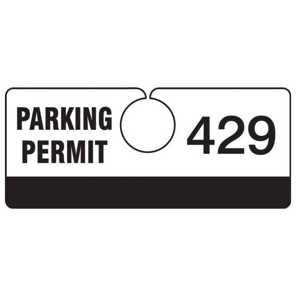 Parking Permit Tag, Numbered 100-199, Black, 2in x 4.75in, Laminated PF-Cardstock, 100PK