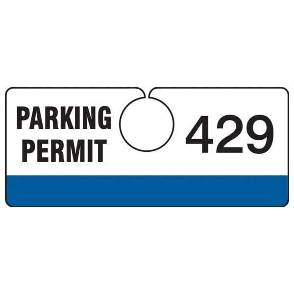 Parking Permit Tag, Numbered 100-199, Blue, 2in x 4.75in, Laminated PF-Cardstock, 100PK