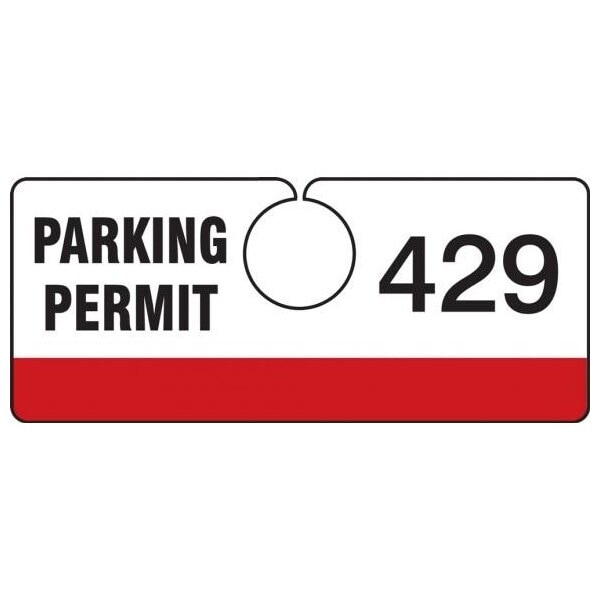 Parking Permit Tag, Numbered 200-299, Red, 2in x 4.75in, Laminated PF-Cardstock, 100PK