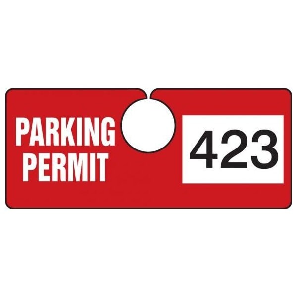 Parking Permit Tag, Numbered 700-799, Red, 2in x 4.75in, Laminated PF-Cardstock, 100PK