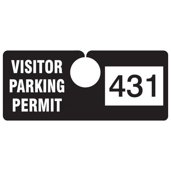 Parking Permit Tag, VISITOR PARKING PERMIT Numbered 001-099, Black, 2in x 4.75in, Laminated PF-Cardstock, 99PK
