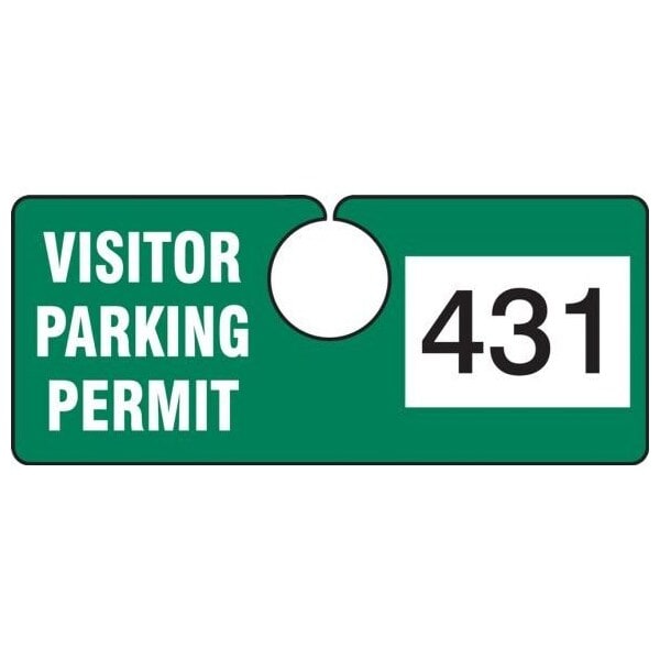 Parking Permit Tag, VISITOR PARKING PERMIT Numbered 300-399, Green, 2in x 4.75in, Laminated PF-Cardstock, 100PK