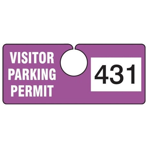 Parking Permit Tag, VISITOR PARKING PERMIT Numbered 300-399, Purple, 2in x 4.75in, 100PK