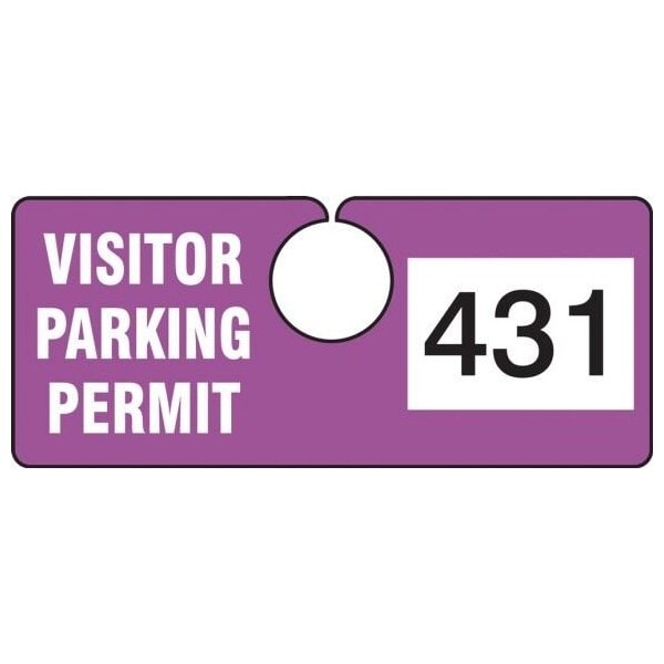 Parking Permit Tag, VISITOR PARKING PERMIT Numbered 500-599, Purple, 2in x 4.75in, 100PK