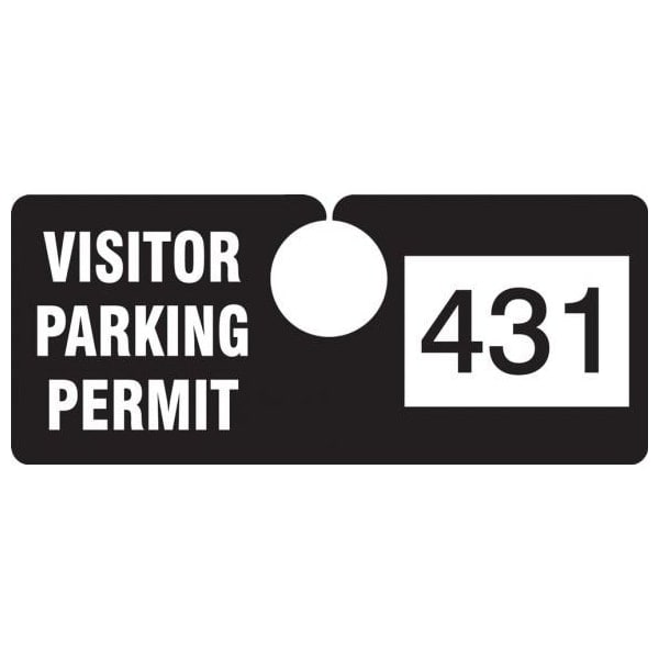 Parking Permit Tag, VISITOR PARKING PERMIT Numbered 700-799, Black, 2in x 4.75in, 100PK