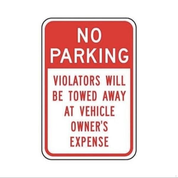Accuform Parking Restriction Sign, Text Legend, Legend NO PARKING VIOLATORS WILL BE TOWED AWAY AT VEHICLE OWNER'S EXPENSE, 008 in Aluminum, PostFence Mounting, 18 in Height, 12 in WidthTraffic signs safely direct and regulate the flow of vehicles and pedestrians in and around parking areas, dock areas and roadways Keep driveways, throughways and curbs free of vehicles and direct to designated parking locations with proper signs EngineerGrade Prismatic Traffic Signs are made of durable 0080 thick Aluminum that will not rust Microprismatic retroreflective sheeting provides added visibility in lowlight and nighttime conditions Signs are printed with UVresistant inks that prevent fading during longterm outdoor exposure and are predrilled with post mount holes