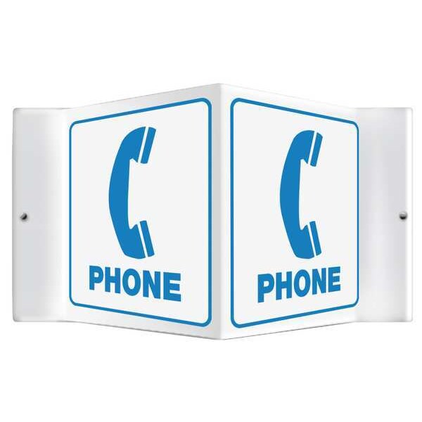 V-Shape Projection Sign, Sign Subject Matter Facility, Height 6 In., Width 8-1/2 In., Sign Material Plastic, Sign Mounting Style With Mounting Holes, V-Shaped, Header No Header, Legend Phone, Printed Language English, Sign Shape V-Shaped