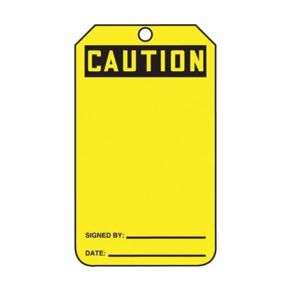 Accuform Safety Tag, CAUTION BLANK Legend, BlackYellow LegendBackground, 534 in Height, 314 in Width, PFCardstock, 38 in Hole, Reinforced PullProof Metal Grommet